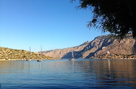 Emme kanna huolta seuraavasta päivästä. Symillä on paljon pieniä hienoja uimapoikamia. Useimmissa niistä on taverna ja aurinkotuoleja varjoineen. Sataman taksiveneiden lippuputiikin pitäjä kertoi illalla, että taksivene starttaa kello 10. Seuraavana aamuna ei tarvitsisi nousta kovin aikaisin.
